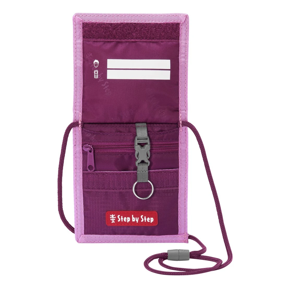 Geräumiges Etui/Geldbörse mit Schlüsselband mit Sicherheitsverschluss für Münzen, Geldscheine, Schlüssel oder Chip für das Mittagessen ist praktisch für kleine Schulkinder in der Grundschule. Wenn das Kind mit dem Schlüsselband über etwas stolpert, kann es sich nicht verletzen, da sich der Verschluss öffnet. Das Etui wird mit einem Klettverschluss geschlossen. Im Inneren befindet sich ein Münzfach mit Reißverschluss, ein großes Scheinfach und ein Schlüsselring an einem abnehmbaren Karabiner. Auf der Rückseite befindet sich ein praktisches, transparentes Ausweisfach, in dem ein Dokument (Essenskarte, Karte für öffentliche Verkehrsmittel usw.) schnell zur Hand ist.