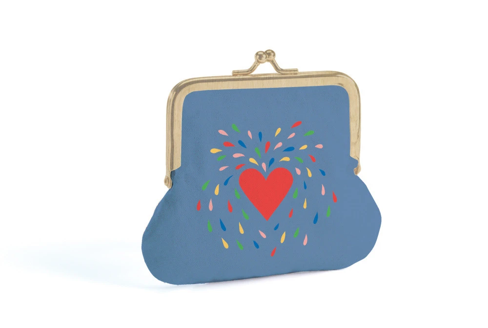 Ein Portemonnaie mit hübschen, glitzernden Illustrationen und einem Retro-Verschluss zum Verstauen von kleinen Ersparnissen.