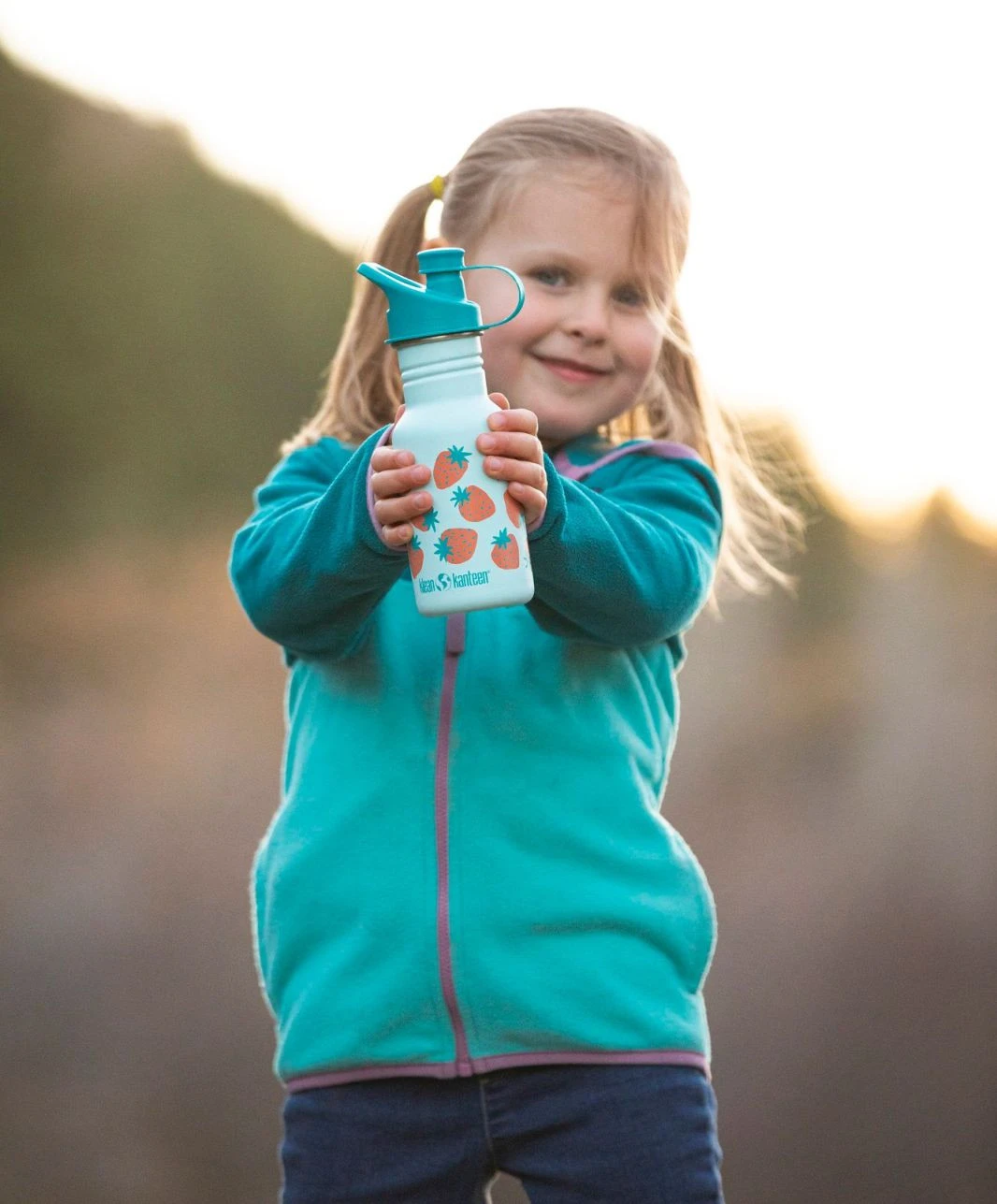 Unsere neuen Kid Kanteen Flaschen mit fabelhaft bunten Farben und Designs sind speziell für Kinder entwickelt. Die robuste Flasche mit 355ml Volumen und Sport Cap sollte bei keinem Ausflug fehlen. Farbe, Form und Größe sind wie für Kinder gemacht. Unsere neue Version ist etwas schmaler und kann somit noch besser von den kleinen Händchen gegriffen und gehalten werden. Überrasche deine Kleinen zum Geburtstag oder zur Einschulung mit dieser tollen Trinkflasche! Das Material und die Herstellung sind umweltfreundlich und nachhaltig. Der Edelstahl und Kunststoff sind BPA-frei, sowie geruchs- und geschmacksneutral. Das Sport Cap ist spülmaschinengeeignet und somit schnell zu reinigen. Es ermöglicht einen kleckerfreien und leichten Trinkfluss – aber bitte nicht liegend transportieren, da es nicht auslaufsicher ist. Am besten die Flasche mit Sport Cap immer separat mitführen, da auch Erschütterungen an der Lüftungs-Dichtung zu Flüssigkeitsverlust führen können. Mit einem Loop Cap aus Kunststoff oder Edelstahl ist die Flasche auslaufsicher.