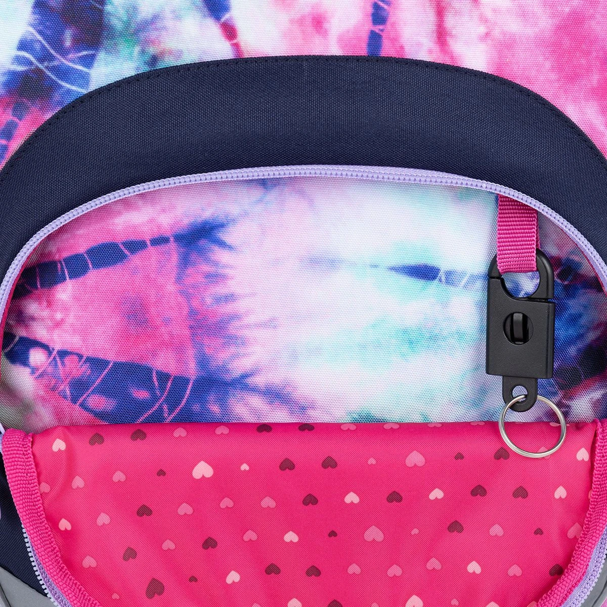 Der Batik-Doppelkammer-Rucksack ist für Mädchen ab 125 cm geeignet. Er ist größer als die anderen, daher empfehlen wir ihn ab der zweiten Klasse. Trotz seines dezenten Schnitts ist der KIMI-Rucksack recht sperrig – er misst 43 cm in der Höhe, sein Volumen reicht also mindestens für die fünfte Klasse. In seinen zwei voluminösen Fächern kann eine wirklich große Menge an Lernstoff untergebracht werden.