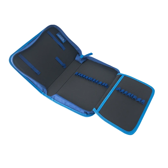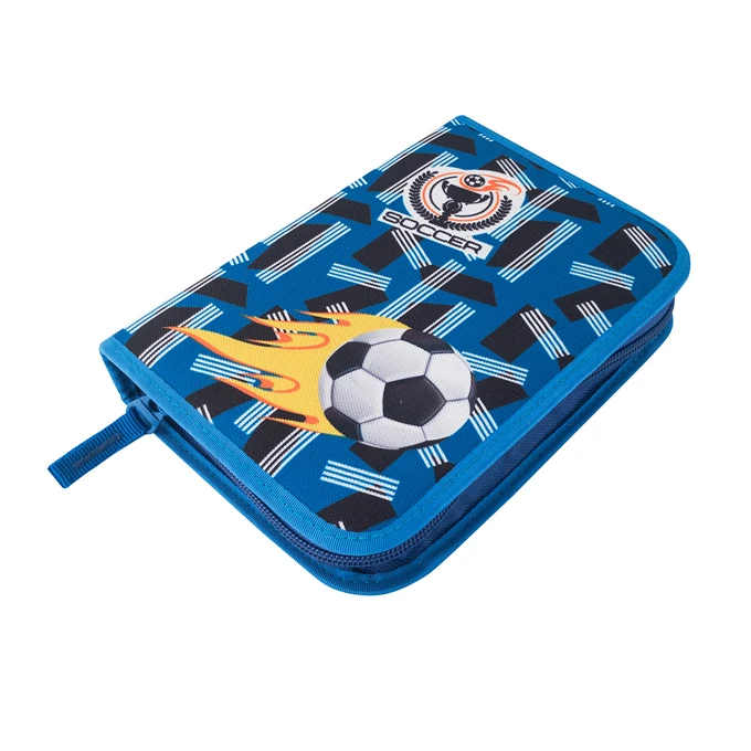 Das Federmäppchen für kleine Fußballspieler hat eine Klappe zum Aufbewahren von Stiften, Bleistiften, Buntstiften, Linealen, Winkelmessern, Radiergummis und anderen Schulmaterialien. Im Federmäppchen finden die Schüler genügend Platz für den Studienplan für einen schnellen Überblick über den Schulalltag. Das Federmäppchen hat genug Schlaufen – 22 Schlaufen für Stifte und Bleistifte für maximale Ordnung und weitere 5 breitere Schlaufen für Radiergummi, Lineal, Spitzer und Kleinteile.
