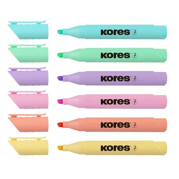 Das Set aus 6 Farben von hochwertigen Textmarker mit Schneidespitze in attraktiven Pastellfarben.