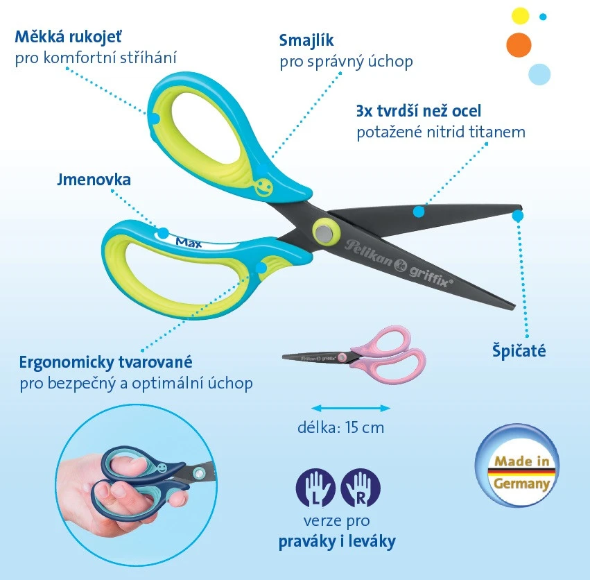 Die neuen Kinderscheren von Pelikan gehören in jede Schultüte, denn Schneiden fördert in der kindlichen Entwicklung die Auge-Hand-Koordination und das räumliche Vorstellungsvermögen.