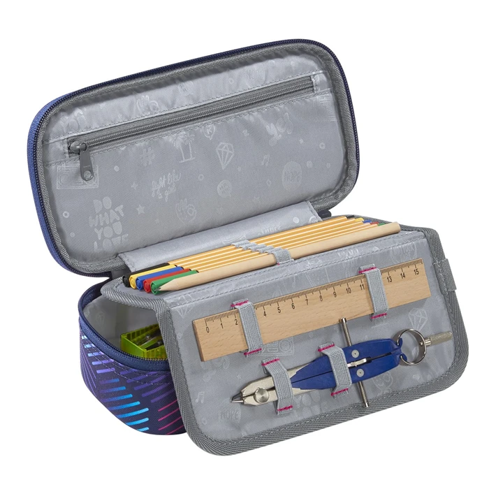 Alles andere als „schlampig“: Im Schulmäppchen geht so schnell nichts mehr verloren – Stifteorganizer und extra Fächer für Stundenplan, Geodreieck und Zirkel halten alles aufgeräumt an seinem Platz. In den Stiftschlaufen im Inneneinteiler sind die wichtigsten Stifte von Füller bis Bleistift sofort griffbereit. Im Stundenplanfach hat dein Kind direkten Überblick, was als nächstes kommt. Das große Hauptfach bietet genügend Platz für Spitzer, Schere, Klebestift und Lineale, kleinere Utensilien wie Tintenpatronen oder Kleingeld sind im Reißverschlussfach sicher aufgehoben. So ist dein Kind perfekt ausgestattet – ob für Schulaufsätze oder den Kunstunterricht. Das Federmäppchen wird ohne Zubehör verkauft.