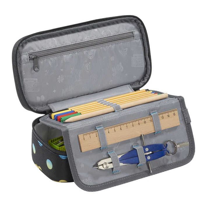 Alles andere als „schlampig“: Im Schulmäppchen geht so schnell nichts mehr verloren – Stifteorganizer und extra Fächer für Stundenplan, Geodreieck und Zirkel halten alles aufgeräumt an seinem Platz. In den Stiftschlaufen im Inneneinteiler sind die wichtigsten Stifte von Füller bis Bleistift sofort griffbereit. Im Stundenplanfach hat dein Kind direkten Überblick, was als nächstes kommt. Das große Hauptfach bietet genügend Platz für Spitzer, Schere, Klebestift und Lineale, kleinere Utensilien wie Tintenpatronen oder Kleingeld sind im Reißverschlussfach sicher aufgehoben. So ist dein Kind perfekt ausgestattet – ob für Schulaufsätze oder den Kunstunterricht. Das Federmäppchen wird ohne Zubehör verkauft.