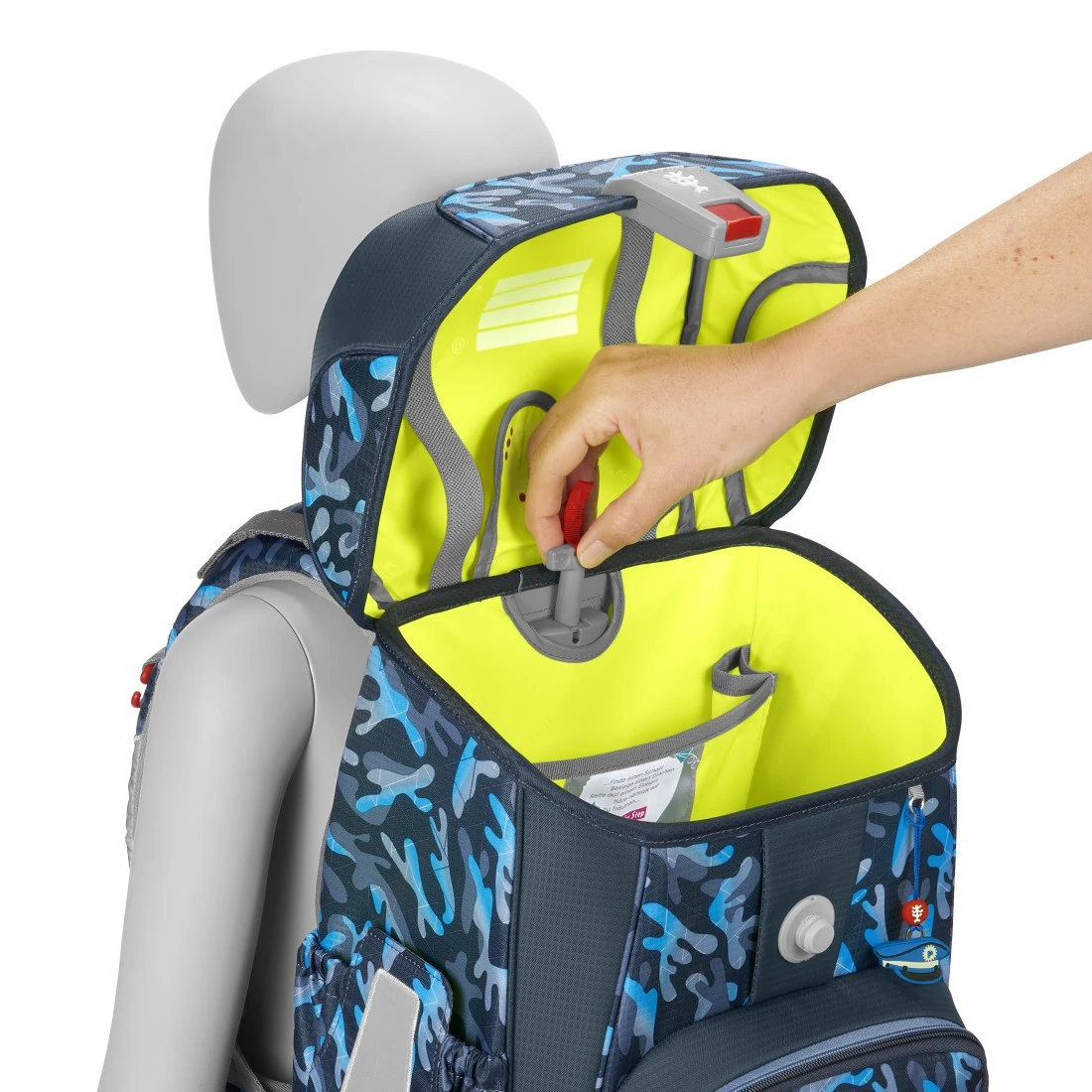 Außerdem wachsen unsere ergonomischen Schulranzen – wie Dein Kind – von einer Körpergröße von 100 bis 150 cm mit. Durch das einzigartige Step by Step EASY GROW SYSTEM lässt sich die Höhe der Schultergurt und die Rückenlänge des Schulranzens stufenlos auf die Größe Deines Kindes einstellen. Das geht ganz einfach, während Dein Kind die Schultasche auf dem Rücken trägt. Die breiten Schultergurte, der höhenverstellbare Brustgurt und der gepolsterte Hüftgurt stellen zusätzlich sicher, dass das Gewicht des Schulranzens gleichmäßig verteilt wird.