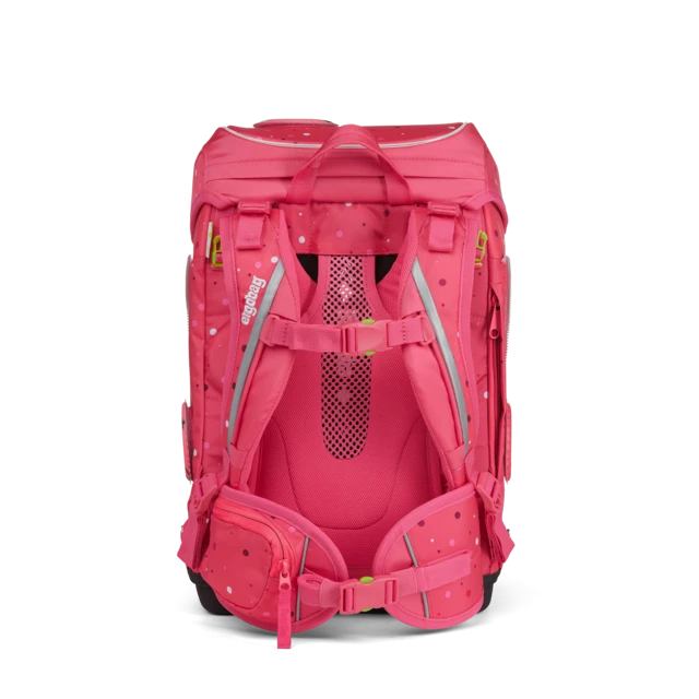Dieses 5teilige Set enthält: Schulrucksack Ergobag cubo, Federtasche mit Zubehör, Sportrucksack, Federmäppchen und 5 Kletties.