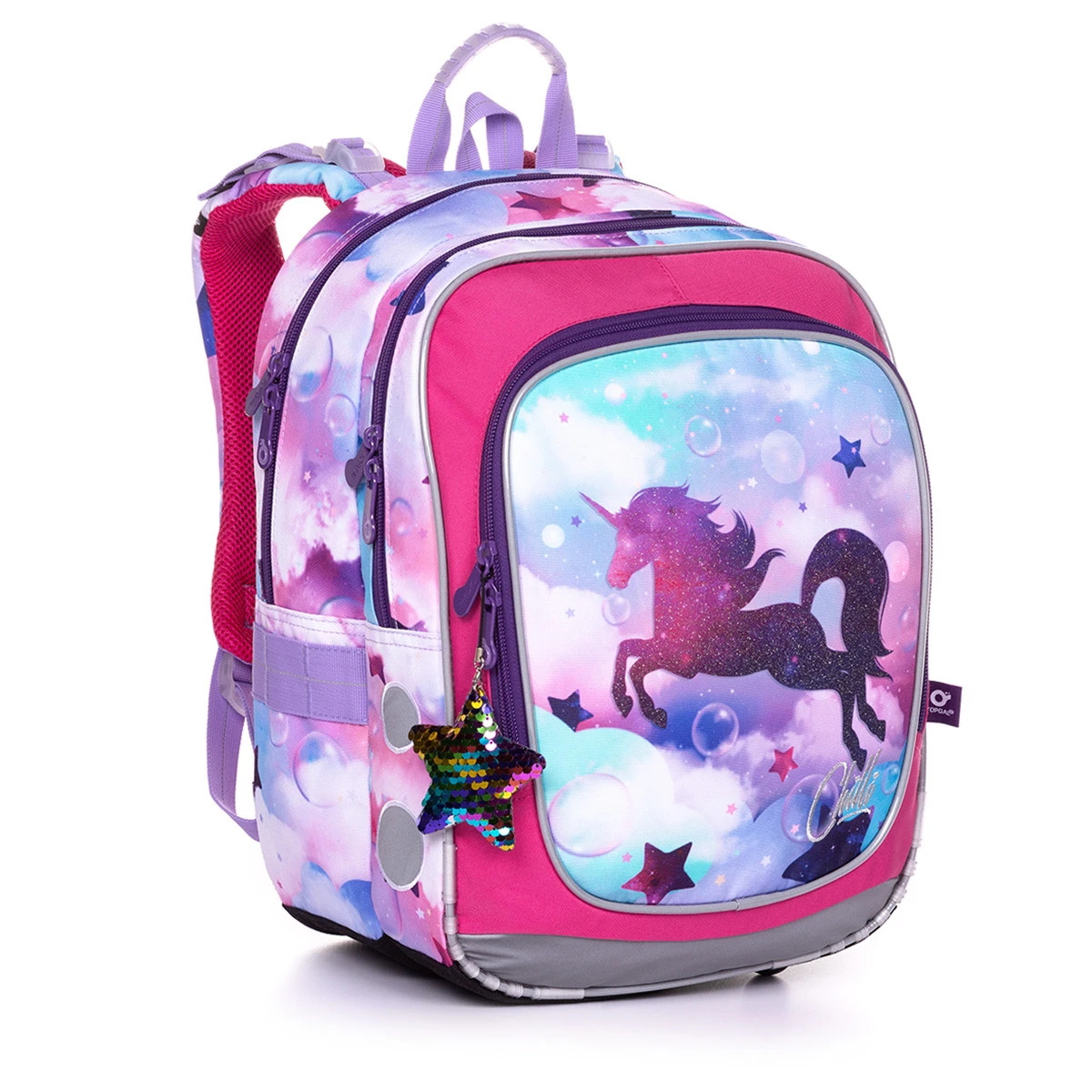 Der ENDY-Rucksack hat zwei Hauptfächer. Legen Sie die schwersten Schulsachen immer in die hintere Kammer. Es ist etwas breiter als das vordere Fach und bietet Platz für alles, was in den ersten Klassen der Grundschule benötigt wird. Das vordere, schmalere Fach kann alles andere verstauen nützen Sie zusätzlich auf jeden Fall die praktische Netz-Reißverschlusstasche die dort innen eingenäht ist. Das im Frontfach über der Netztasche versteckte Namensschild hilft bei der Identifizierung der Rucksäcke, auch wenn zwei Exemplare in der gleichen Klasse aufeinandertreffen.