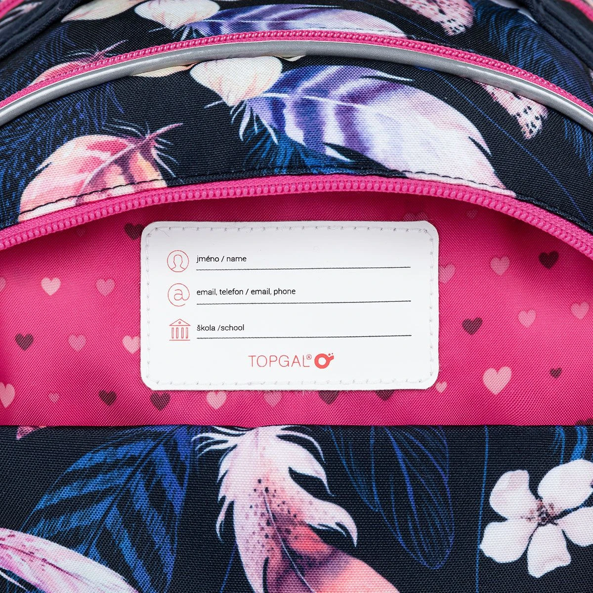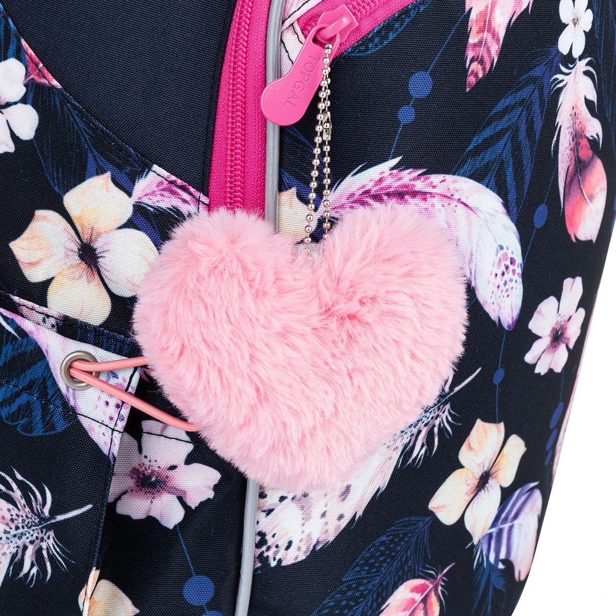 Der dunkelblaue Dreikammer-Rucksack mit Federn, rosa Reißverschlüssen und einem plüschigen Anhänger in Herzform ist ein toller Begleiter für die erste bis fünfte Klasse. Das Modell COCO ist ein beliebtes Modell für zierliche Mädchen in der ersten Klasse sowie für Schülerinnen in den oberen Klassen der ersten Grundschulstufe. Der Rucksack ist federleicht und in Kombination mit Blumen wird er viel Gutes bewirken.