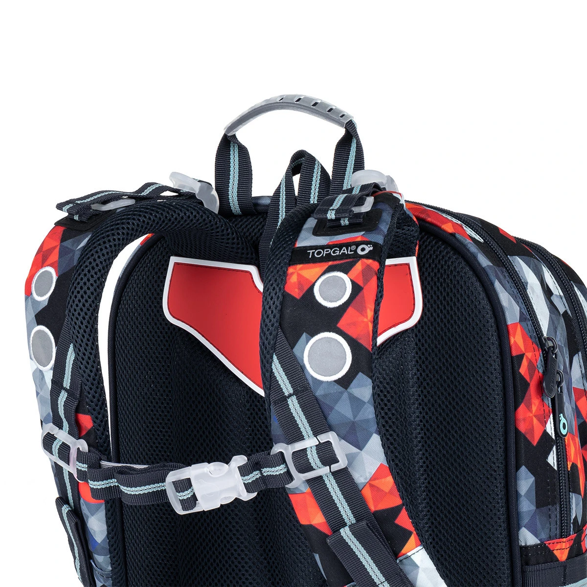 Die Rückseite des Rucksacks ist aus weichem Formschaum geformt, was den Rucksack so leicht macht. Die Schultergurte sind gepolstert, anatomisch geformt und können mit Schnallen unten vertikal und oben nach hinten geschnallt werden. – Sie fallen auch im Winter, wenn Kinder Jacken tragen nicht von den Schultern, keine Sorge. Die Schultergurte sind noch dazu mit einem höhenverstellbaren Brustgurt ausgestattet.