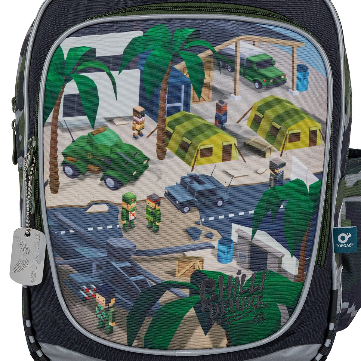 Minecraft Military Motic und eine Metall-Erkennungsmarke am Reißverschluss, das ist ein klarer Hit der diesjährigen Kollektion! Ideal für Jungen aus der Ersten Klasse. Dank zwei großer Fächer passt der Rucksack mindestens in die 3. Klasse der Grundschule! Außerdem ist der Rucksack ultraleicht, er wiegt kein Kilogramm! Wir können ihn daher sogar für die kleinsten Jungen unter 120 cm empfehlen.