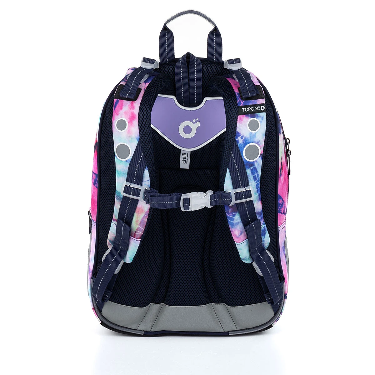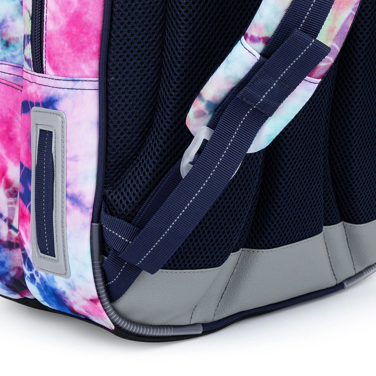 Der Rucksack verfügt über ein festes Rückensystem mit Aluminiumverstärkung, das nur 0,06 kg wiegt. Die Verstärkung hält den Rücken des Rucksacks in der richtigen anatomischen Biegung, daher empfehlen wir, das Rückensystem nicht abzunehmen. Dank der anatomischen Polsterung ist der Rücken des Rucksacks weich und eine gute Luftzirkulation zwischen Kinderrücken und Rucksack ist gewährleistet.