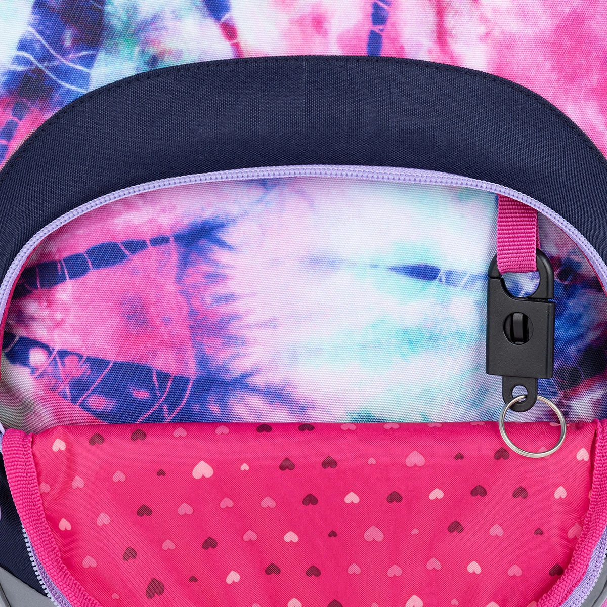 Im gleichen Design zu kaufen gibt es ein Einkammer Federmäppchen PENN oder ein ovales ETUE. Das Federmäppchen PENN passt beispielsweise in die kleine Fronttasche, in der sich auch ein abnehmbarer Karabiner für einen Schlüssel befindet. Sie können die Tasche aber auch als Tasche für eine Snackbox nutzen. Verstauen Sie außerdem eine Trinkflasche in eine Tasche an der Seite des Rucksacks.