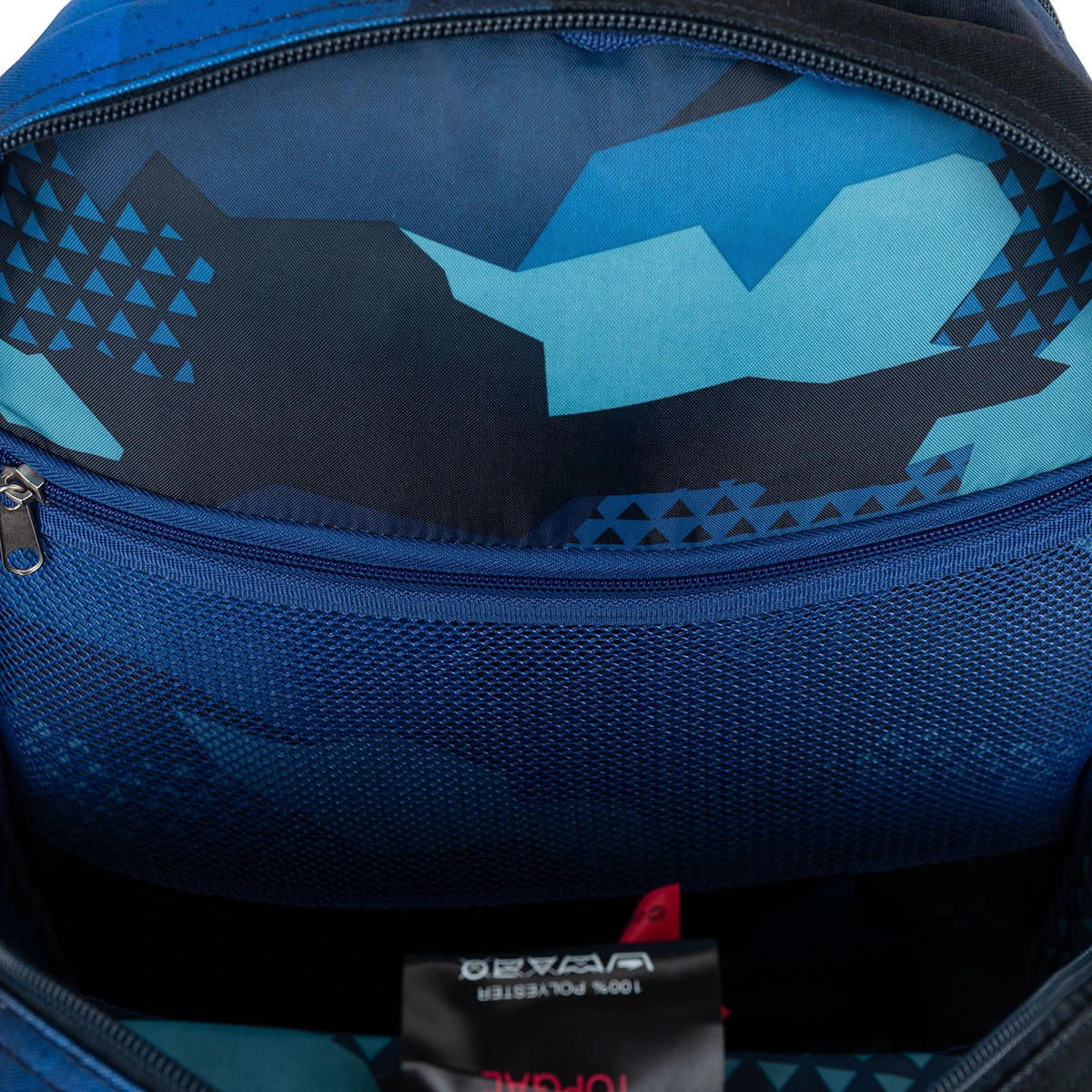Das hintere Fach des Rucksacks ist schmaler und enthält eine kleinere Netztasche mit Reißverschluss. Das vordere Fach ist etwas breiter, geräumig und wird durch eine gepolsterte Trennwand in zwei Bereiche unterteilt. Sie können Lehrbücher und Hefte oder Lernen und Snacks bequem trennen. Sie können Ihre Snackbox aber auch in der tiefen Vordertasche unterbringen, die auch ein Namensschild und einen abnehmbaren Schlüsselclip enthält.