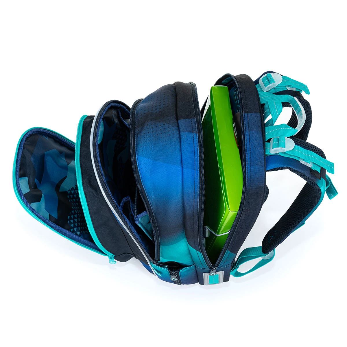Der blaue Schulrucksack ala Lichtbrechung ist für alle Jungen (aber auch Mädchen) über 125 cm geeignet. Das Modell MIRA mit zwei Kammern und seinem Volumen ist mindestens bis zur fünften Klasse geeignet. Die blaue Farbe wird jeden Schultag aufhellen. Der Rücken des MIRA-Rucksacks ist gepolstert, anatomisch geformt und mit Aluminiumverstärkungen versehen. Die Verstärkung reißt nicht aus, ist leicht, hält die Form des Rückensystems und fördert die Luftzirkulation zwischen dem Rücken und dem Rucksack. Die Schultergurte sind gepolstert, anatomisch geformt und an der Unter- und Oberseite verstellbar. Der höhenverstellbare Brustgurt sorgt dafür, dass der Rucksack auch bei kleineren Schulkindern nicht von den Schultern rutscht.