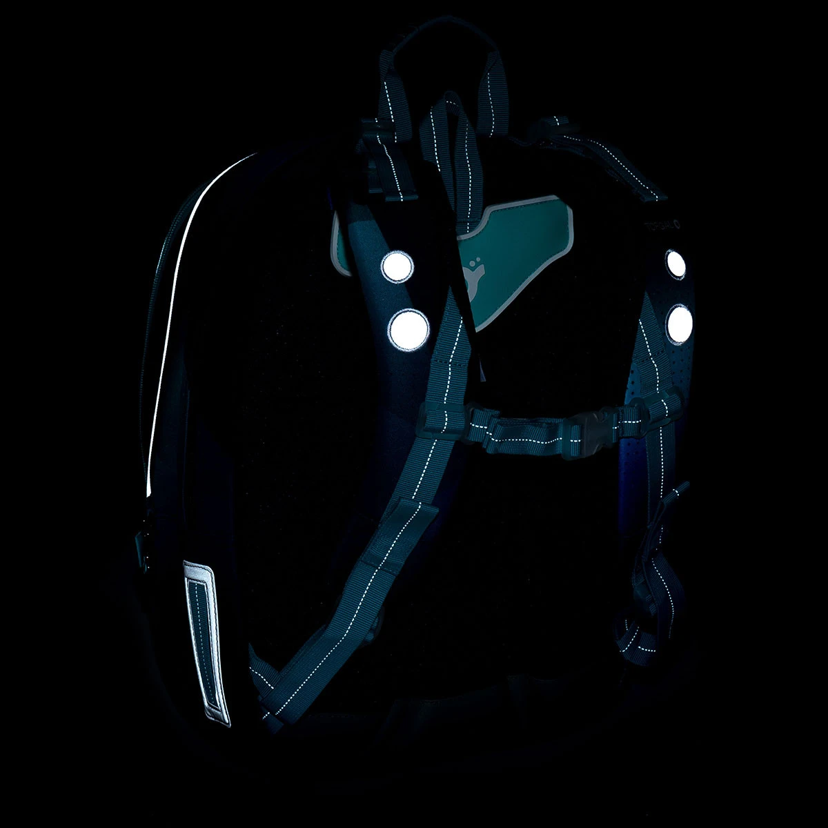 – reflektierende Elemente – an der Vorderseite und den Seiten des Rucksacks, an den Schultergurten