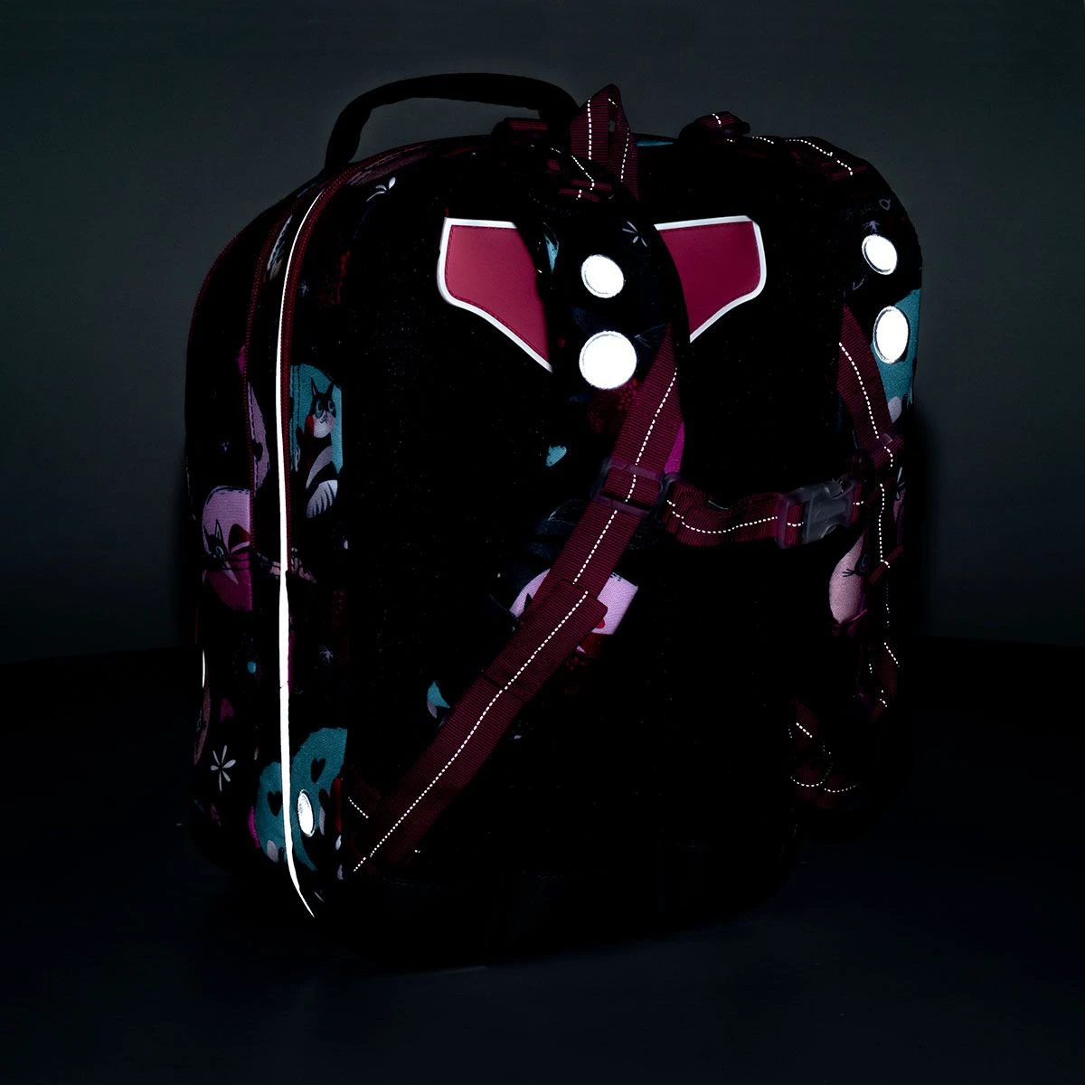 Das Dreikammermodell COCO ist ein beliebter Schnitt für kleine Mädchen in der ersten Klasse, aber auch für Schülerinnen in den oberen Klassen der Grundstufe. Die niedliche Katzenpackung in Kombination mit rosa Herzen kommt auf einem dunklen Hintergrund schön zur Geltung.