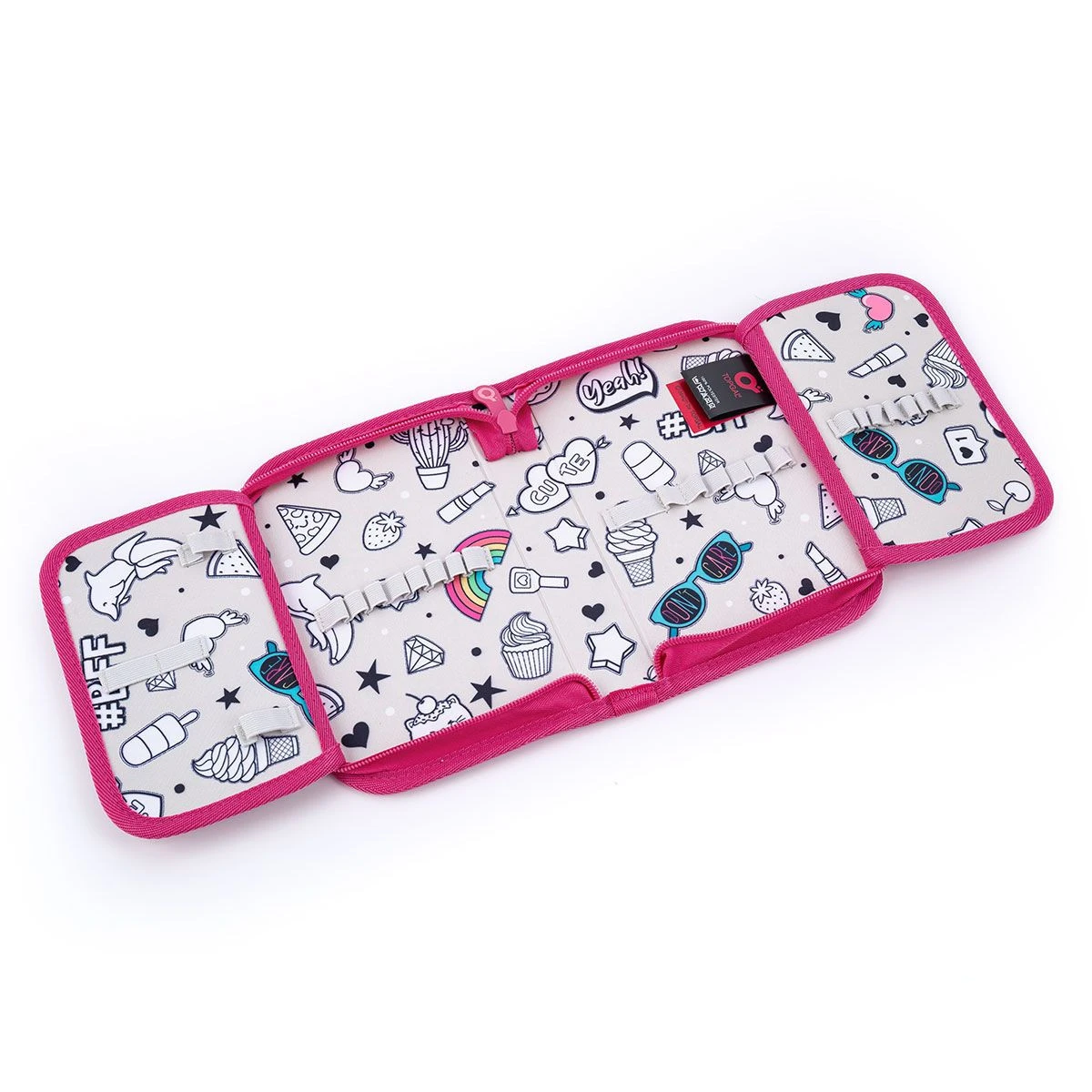 Der Rucksack hat drei geräumige Fächer. Die hintere Kammer ist breiter – wir empfehlen, die schwersten Schulbücher oder Notebook-Ordner nach hinten zu legen. Die vordere Kammer ist etwas schmaler und hat eine kleine Netztasche mit Reißverschluss und ein Namensschild. Das dritte (vordere) Fach wird z.B. für ein PENN 22054 Federmäppchen im gleichen Design oder eine Snackbox verwendet. Die Seitentaschen können Flaschen mit einem Fassungsvermögen von 0,5 Litern aufnehmen.