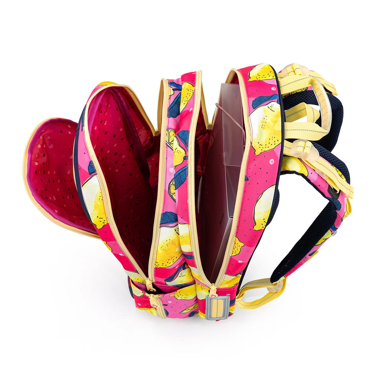 Den beliebten Zwei-Fächer-Schnitt des CODA-Rucksacks haben wir für größere Schüler sowohl in der ersten Grundschulstufe als auch zu Beginn der Sekundarstufe erweitert. Aber der Schnitt ist schmal, so dass er auch dünnen Leuten passt. Wir empfehlen es ihn jedoch nicht für kleine Kinder. Der Rucksack passt gut ab einer Körpergröße von ca. 125 cm / ab der zweiten Grundschulklasse. Dieses Rucksackdesign mit Knallfarben mit Zitronenprint.