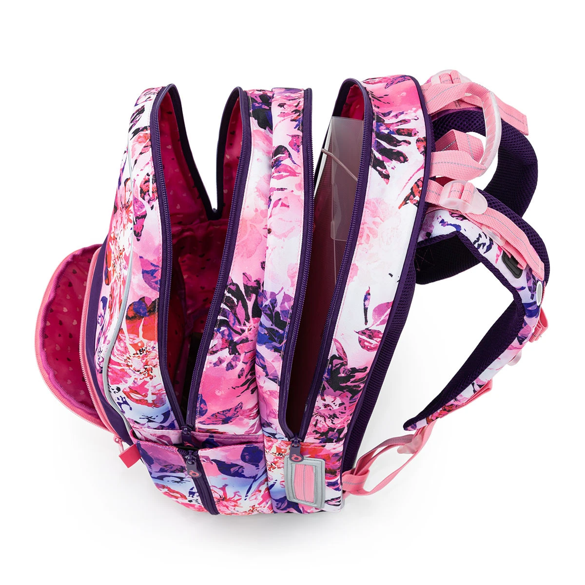 Zwei große Fächer des KIMI-Rucksacks können alle schulischen Bedürfnisse von Mädchen in der Grundschulstufe aufnehmen. Aufgrund seiner Abmessungen empfehlen wir ihn ab einer Körpergröße von ca. 125 cm.