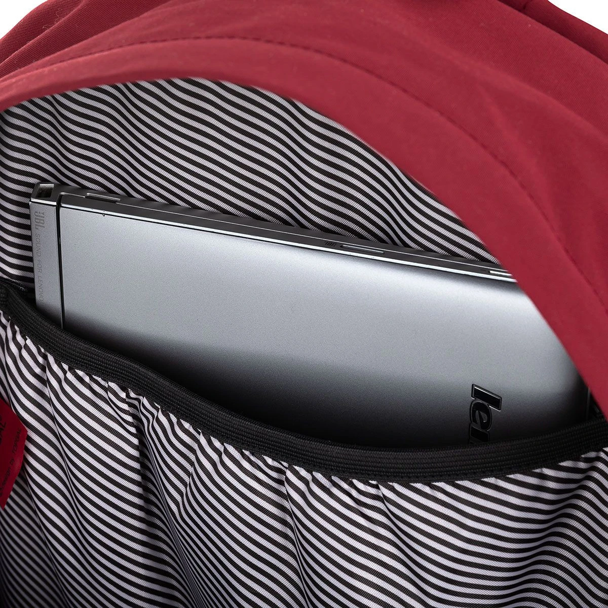 Der schlichte Rucksack im Vintage-Stil mit hochwertiger Konstruktion, Außentaschen für eine Wasserflasche und Innentaschen ist für städtische Abenteuer geschaffen.