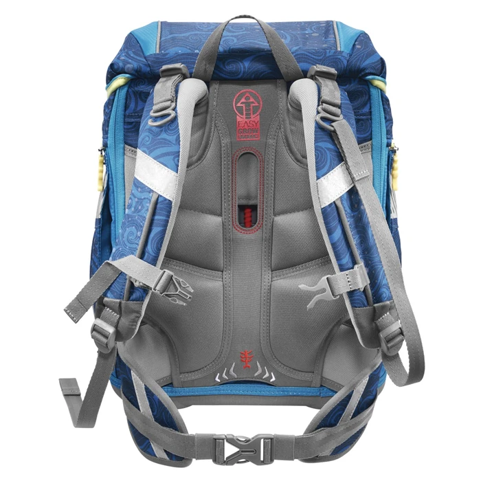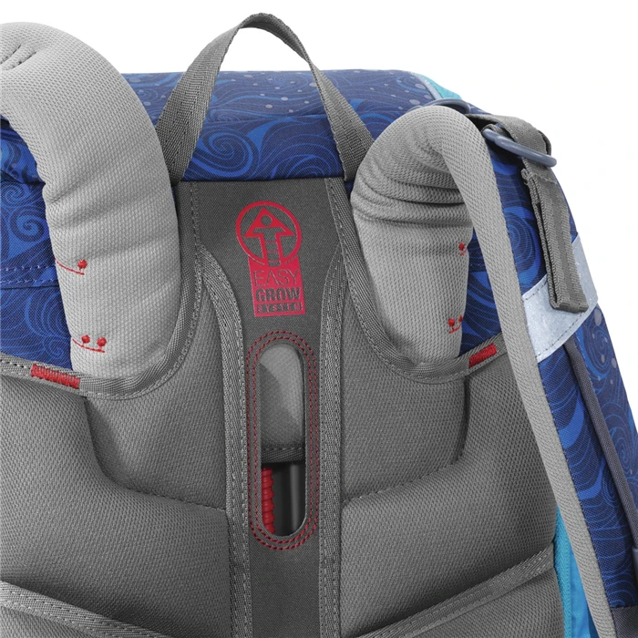 Möglich macht dies das clevere EASY GROW SYSTEM: Mit dem Drehgriff im Inneren des Schulranzens kann die Höhe der Schulterträger und damit auch die Rückenlänge des Schulranzens ganz unkompliziert und individuell angepasst werden. Am einfachsten geht das, während Dein Kind den Ranzen gerade trägt – so siehst Du sofort, ob er richtig passt. Auf diese Weise wächst der Schulranzen über alle vier Jahrgangsstufen mit, und passt bei einer Körpergröße von 100 bis 150 Zentimetern.