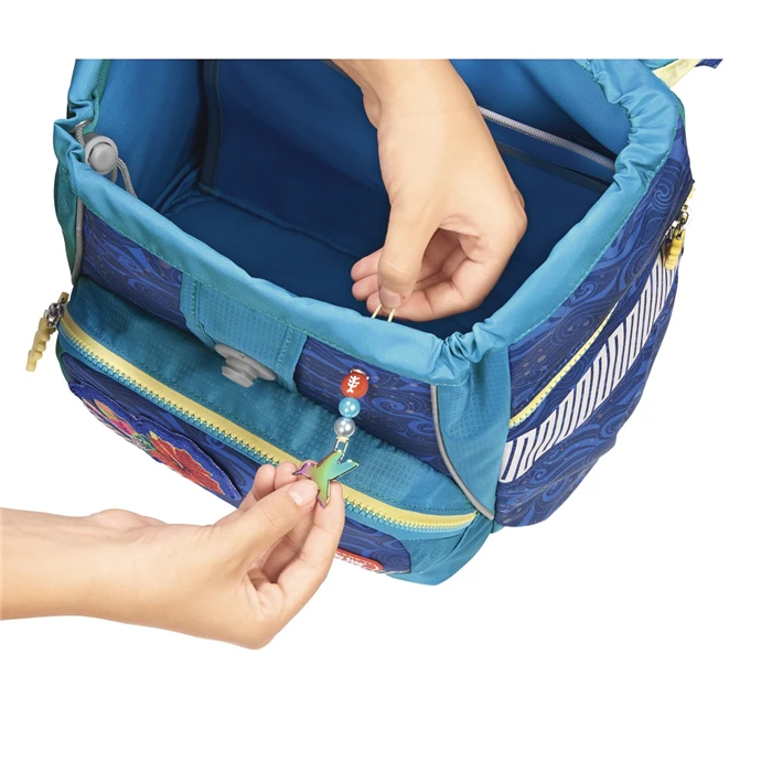 MAGIC MAGS, das sind Applikationen in vielen verschiedenen Farben und Motiven, die an den integrierten Magnetflächen des Ranzens befestigt werden können. Ein Set, das bei jeder Schultasche dabei ist, enthält zwei MAGIC MAGS und zusätzlich einen Anhänger, der sich an einer Aufhängeöse an der Schulranzenfront festmachen lässt.