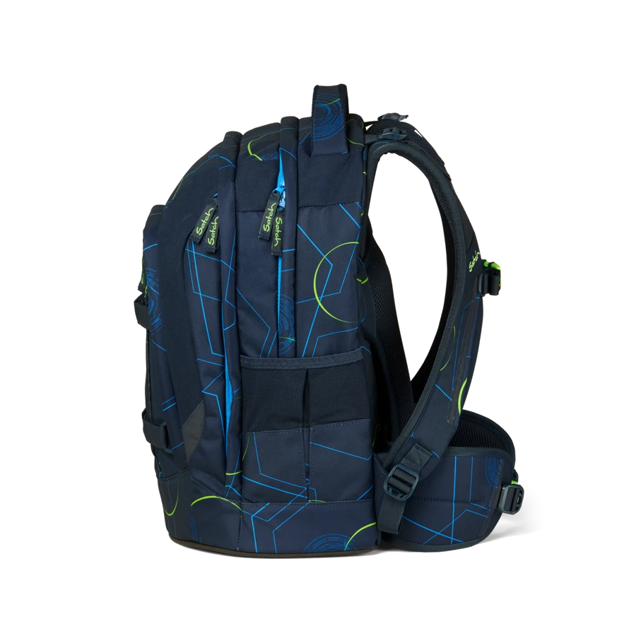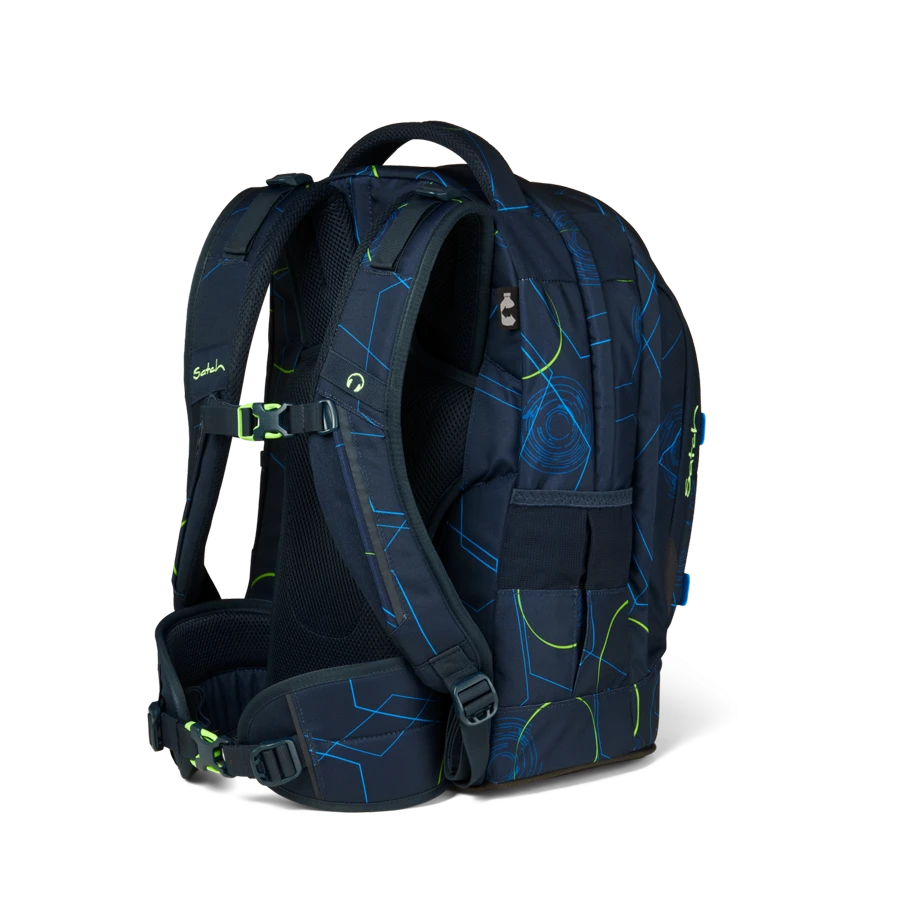 satch entlastet und wächst mit: Aus dem Bergsport auf den Schülerrücken: Das satch Tragesystem garantiert die Verlagerung des Gewichts von den Schultern auf den stabilen Beckenbereich. Passgenaue Einstellung von 1,40 m – 1,80 m.