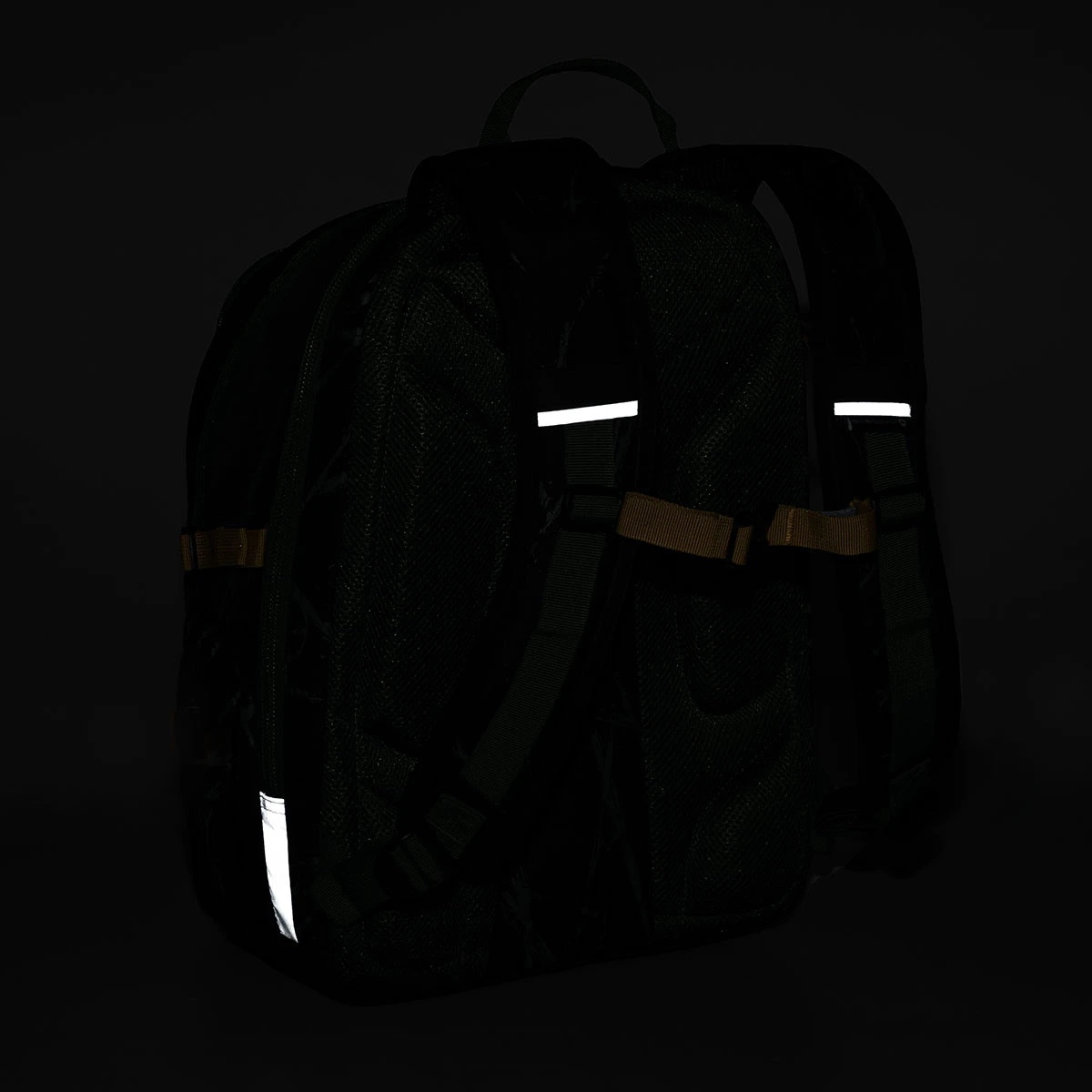 RUBI Studentenrucksack in Schwarz mit khaki- und senfgelben Details. Idealer Rucksack für Schüler der zweiten Stufe der Grundschule, des Gymnasiums und der Hochschule. Die Rückseite des Rucksacks ist weich gepolstert, anatomisch geformt und mit Aluminiumverstärkung verstärkt. Auch die Schultergurte sind gepolstert und anatomisch geformt. Diese sind höhenverstellbar, ebenso wie der Brustgurt.