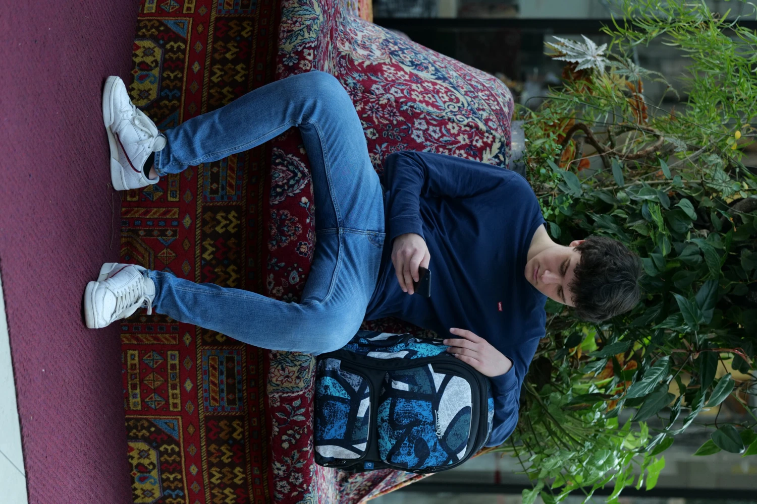 Das breite Rückenfach des Rucksacks ist geeignet für alle Lernmaterialien. Im Rückenfach befindet sich zudem eine gepolsterte Tasche für ein Notebook, die Sie auch als Tasche für Notizblöcke oder A4-Ordner nutzen können. An der Tasche ist eine weitere kleine gepolsterte Tasche angenäht, in der alles verstaut werden kann, was man im Rucksack sicher verstauen möchte – zum Beispiel ein Handy oder eine Powerbank. Das Vorderfach des Rucksacks ist schmaler, innen befindet sich eine kleine Netztasche mit Reißverschluss und ein auf Gummizügen aufgenähter Karabiner für Schlüssel.