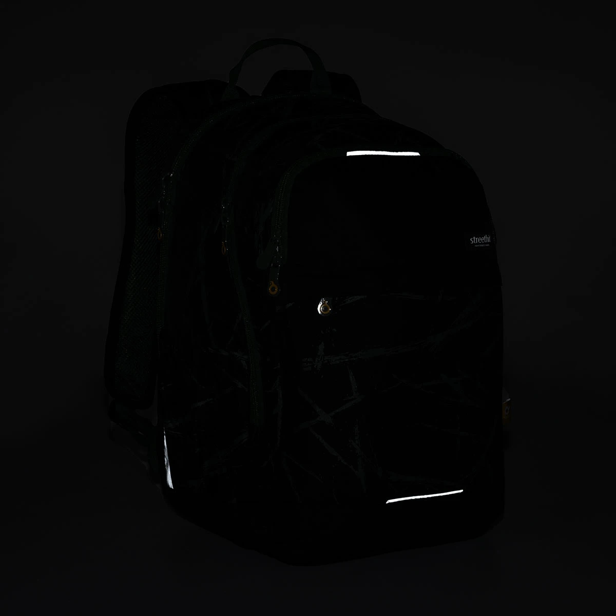 Der Rucksackstoff ist mit einer Regenbeschichtung versorgt. An der Vorderseite, auf den Seiten und auf den Schultergurten des Rucksacks, befinden sich reflektierende Elemente. An beiden Seiten des Rucksacks befinden sich zudem zwei Netztaschen. Eine ist mit einem Kompressionsriemen ausgestattet, so dass Sie bequem eine 1,5-l-Flasche daran befestigen können. Sie können auch eine Hülle ETUE 22033 im gleichen Design mit dem Rucksack kaufen.